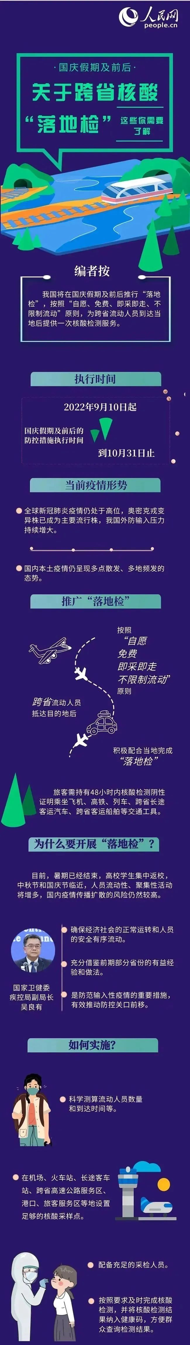 近日,国务院联防联控机制新闻发布会上提出,国庆假期临近,人员流动性增加,加大了疫情传播的风险,防控形势严峻复杂。为了避免发生本土规模性疫情,我国在国庆假期及前后,在全国推行“落地检”。为什么要开展“落地检”?如何来组织实施“落地检”?……关于“落地检”这些请了解