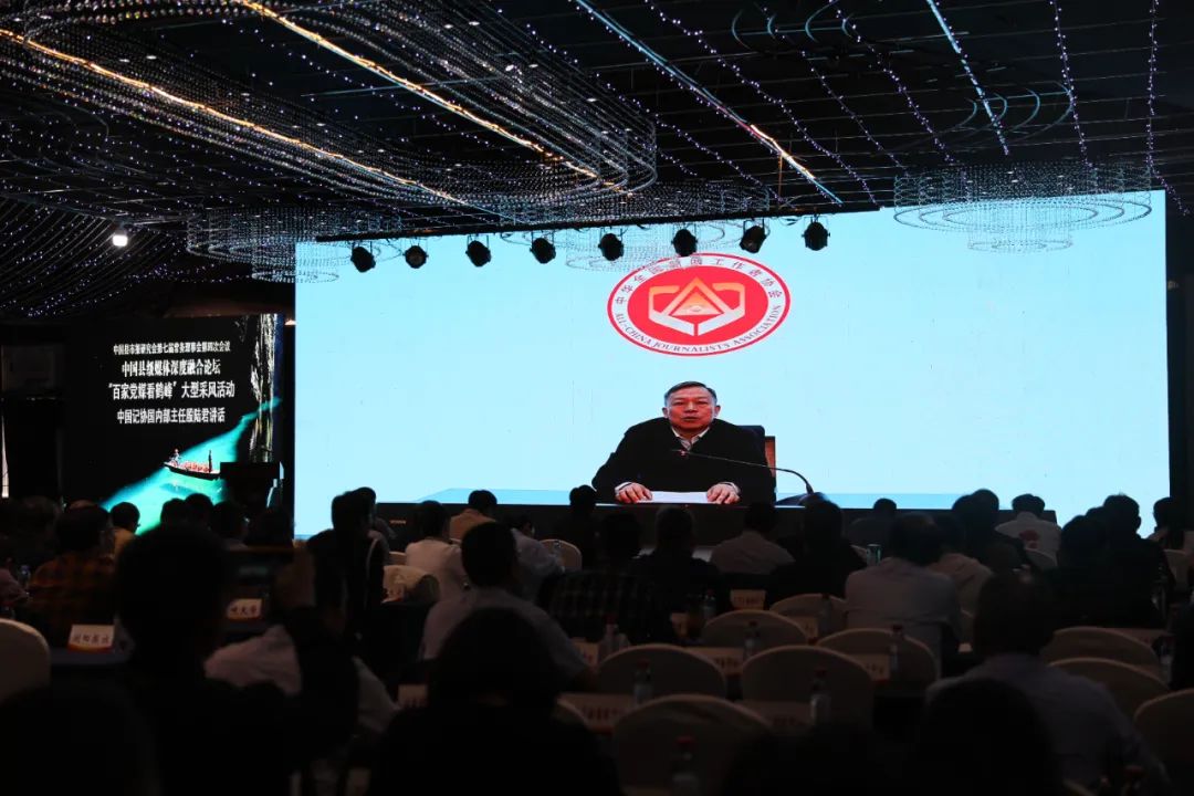中国记协国内部主任殷陆君通过视频致辞,他表示,各县级媒体要提升政治站位,巩固壮大奋进新时代的主流思想舆论,深入学习贯彻习近平总书记关于新闻舆论工作的重要论述,坚持守正创新,推动媒体融合向纵深发展,坚定服务发展,打造并完善综合公共平台,更加努力推进县级媒体深度融合,助力提升新闻舆论传播力、引导力、影响力、公信力,凝聚起奋进新征程的磅礴力量。
