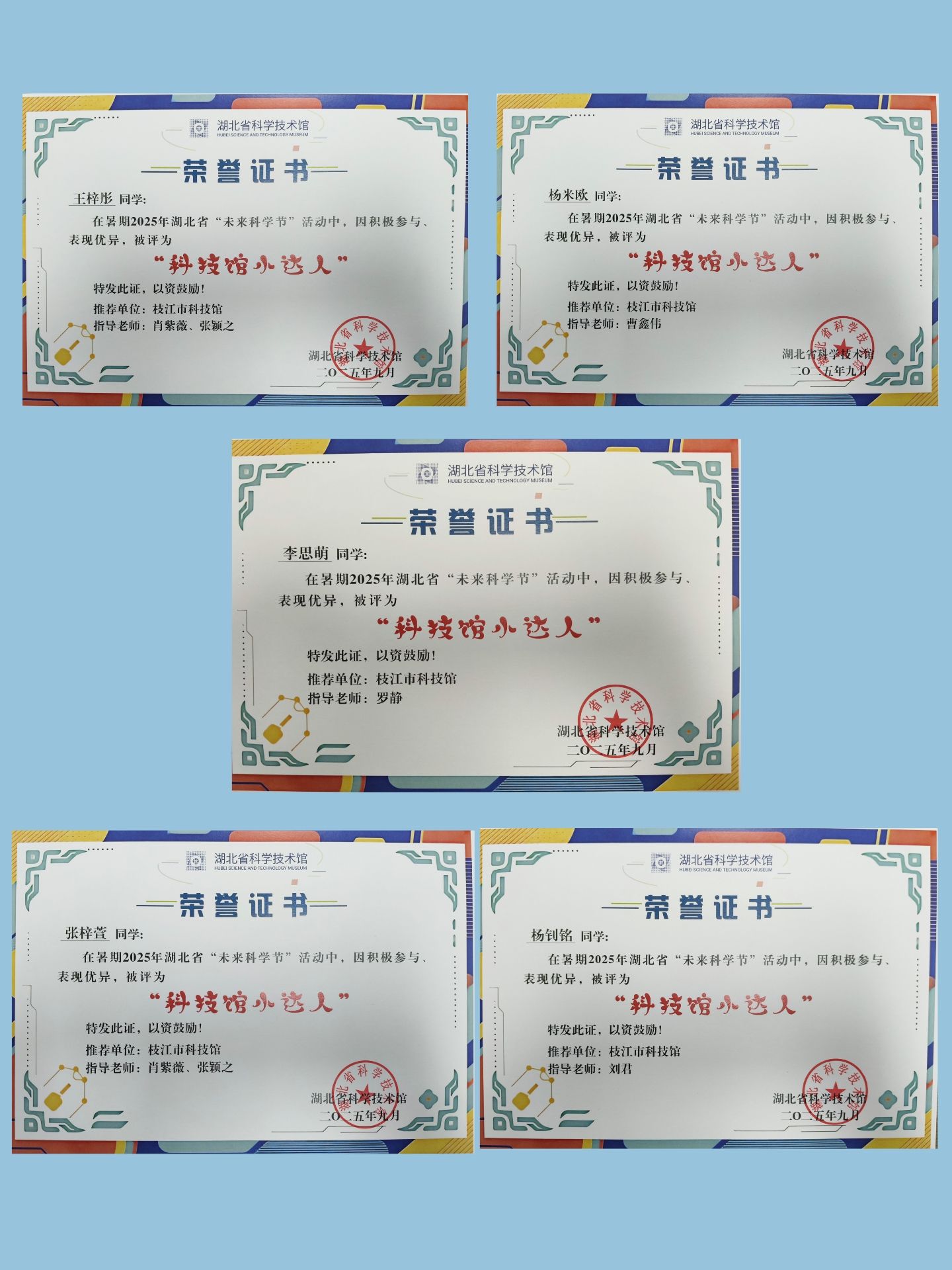 这些同学在活动中展现了扎实的科学知识、优秀的表达能力和对科学的热爱,为枝江市科技馆争得了荣誉。他们的成功离不开科技馆科普老师的精心培养和指导,也离不开自身的努力,更离不开家长的积极配合。