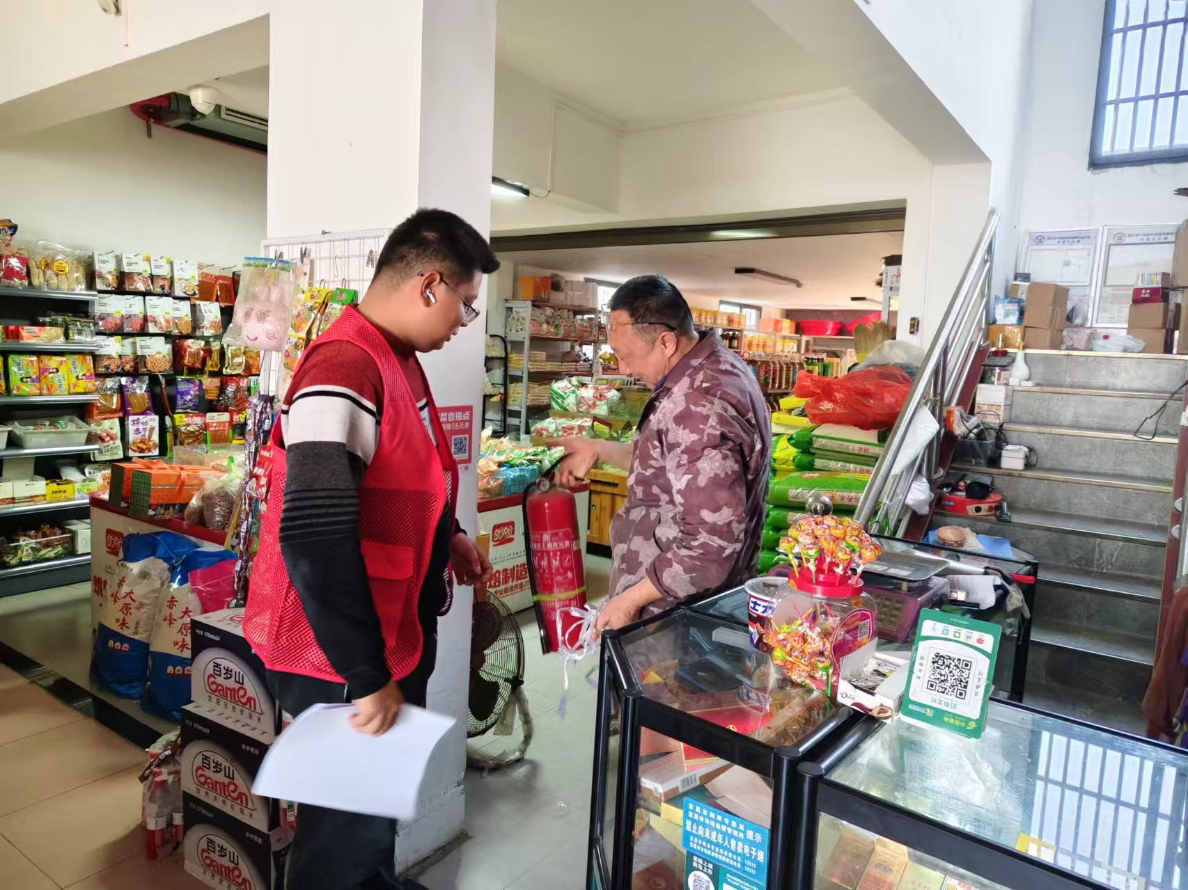 此次行动前,村委会召开专题部署会,组建排查小组,明确工作方案。在安全检查现场,工作人员重点排查辖区店铺、餐馆及小型企业的消防设施配备、电气线路规范等情况,对餐馆食品储存条件、企业特种设备检验等关键环节逐一核查。针对发现的灭火器过期、货物堵塞消防通道等问题,当场下达整改通知,明确整改时限与标准。