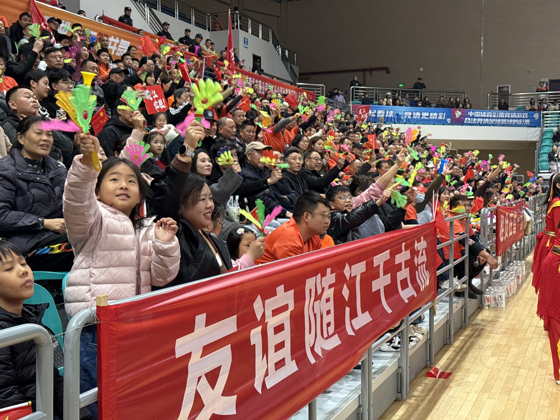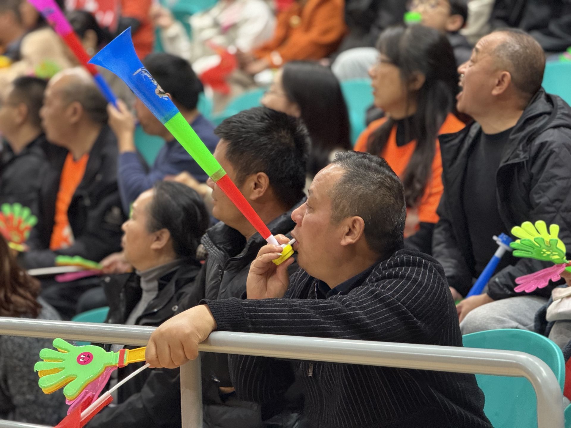 开赛前,文体中心内外已人头攒动,志愿者们忙着分发观赛用品,安保人员有序开展安检工作,“志愿红”与“守护蓝”共同构筑起赛事保障防线。不少球迷穿着印有“枝江加油”的文化衫,提前占据有利观赛位置。“今天是枝江对枣阳的第二场比赛,我们是每一场比赛都看,作为枝江队忠实的篮球迷,为枝江队加油!”市民谭兰芬难掩期待地说。