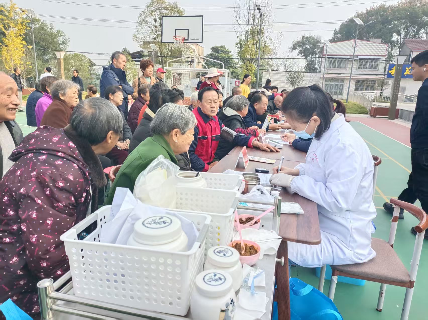 最受居民欢迎的当数“专家义诊”专区。来自宜昌市第二人民医院内科、骨科、中医科的专家耐心为老人量血压、测血糖,详细询问身体状况,针对老年常见疾病给出个性化诊疗建议和用药指导,还贴心提醒大家注意秋冬季节保暖和饮食调理,让老人们在家门口就享受到专业的医疗服务。