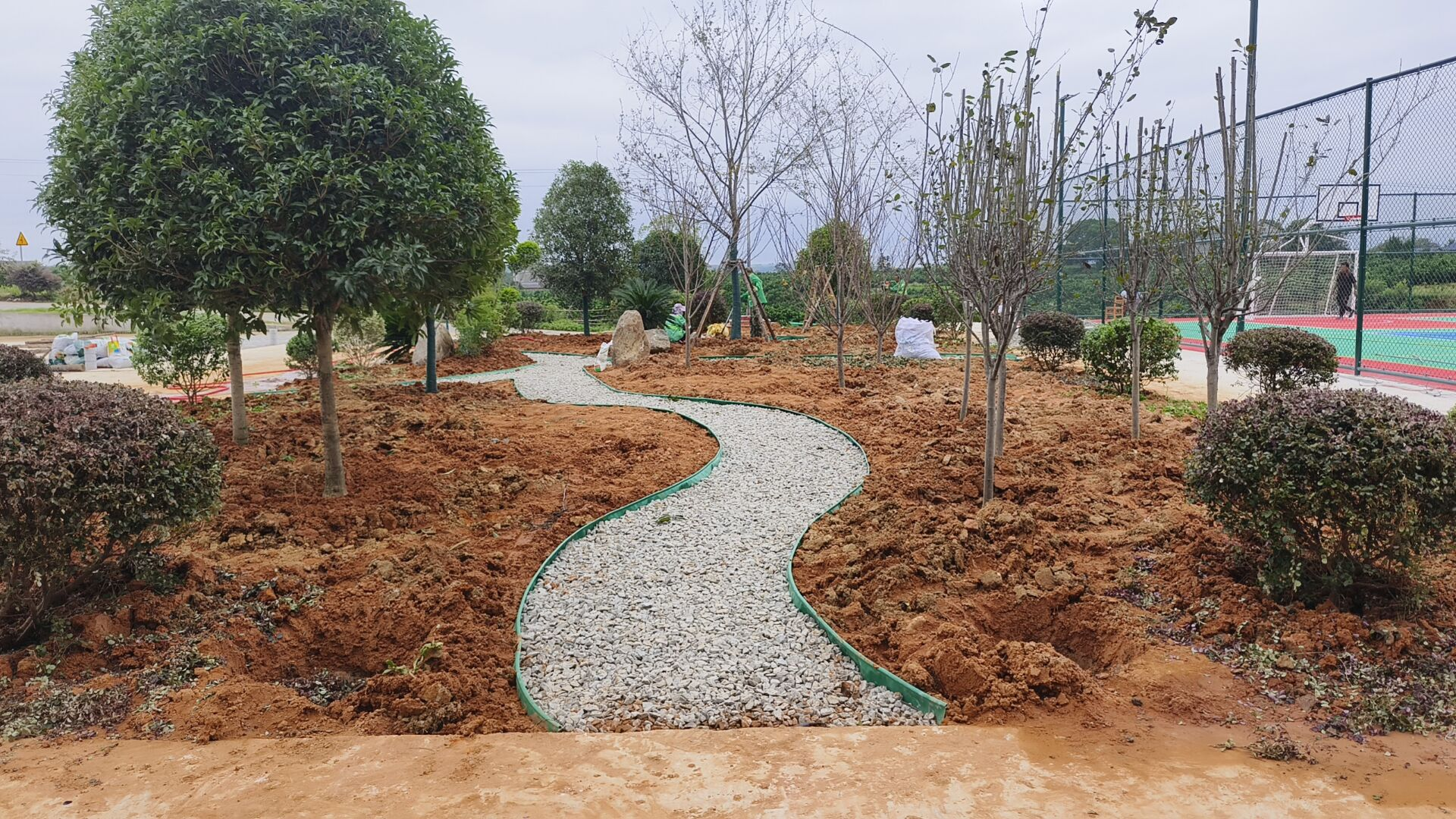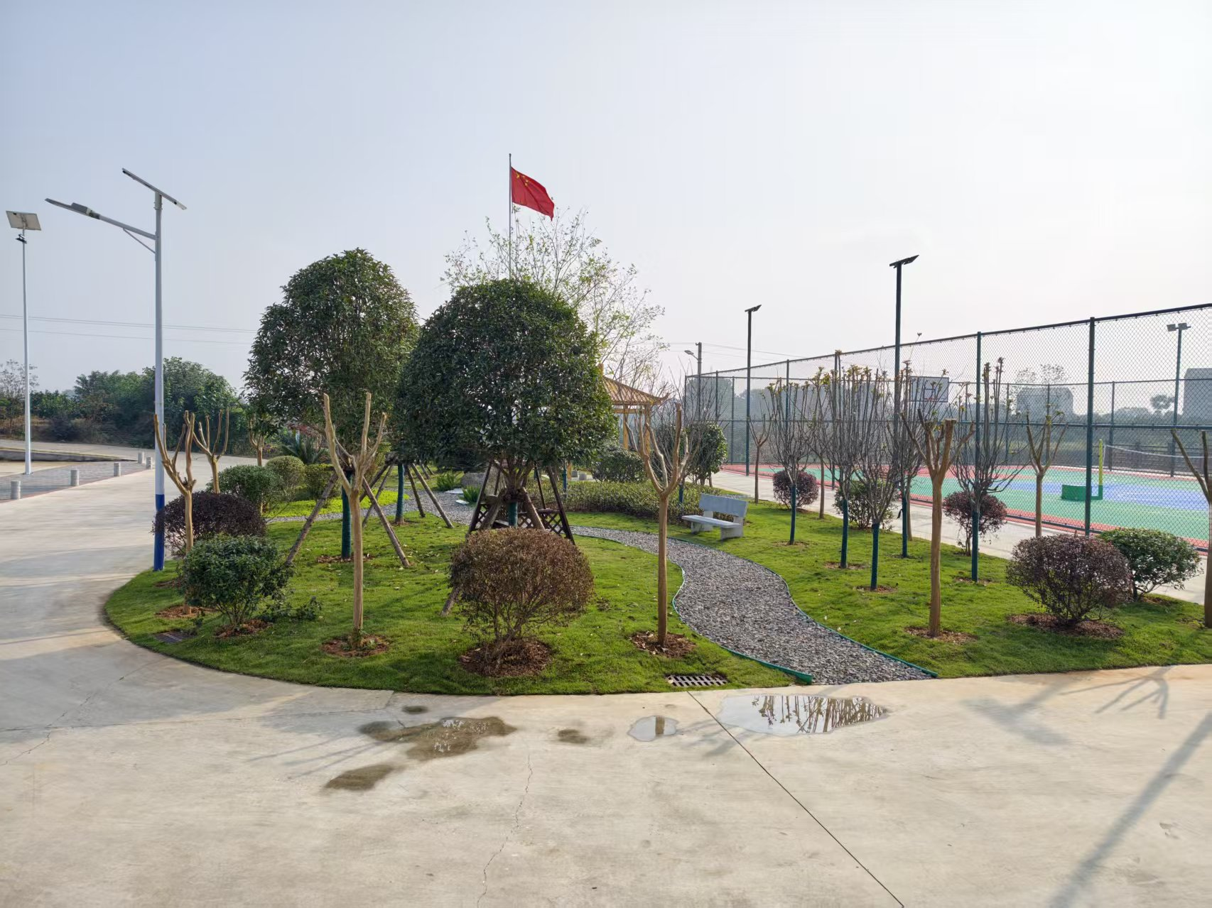 施工团队结合乡村风貌与村民需求,精心规划布局:该园林栽种了桂花、红木等乡土树种,搭配四季花形成层次丰富的绿化景观,还铺设了便民休闲步道并安置了长椅,点缀了小型景观小品,既保证了观赏性,又兼顾了实用性。“以前村委会门口就是一块空地,现在走过来满是绿植,空气都变清新了!”村民李大妈带着孙子在步道上散步,脸上满是笑意,“以后饭后遛弯、邻里聊天有个好地方了。”