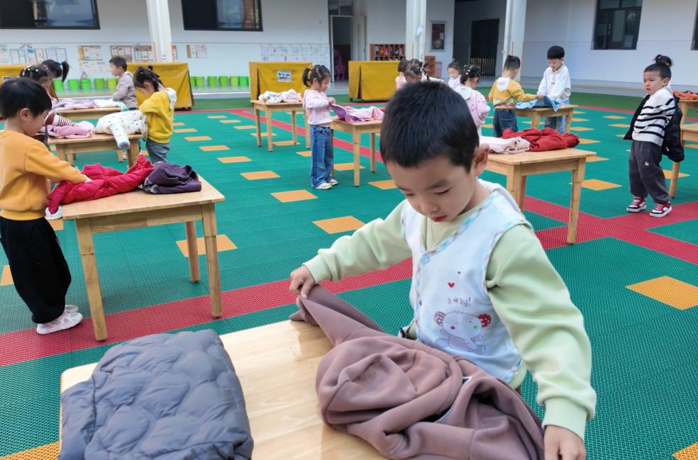 本次竞赛结合小、中、大班幼儿的年龄特点和发展水平,量身定制了不同的比赛项目,既贴合生活实际,又充满趣味挑战。小班的宝贝们挑战“穿鞋子”,别看他们年纪小,动作却认真又专注;中班的孩子们比拼“穿、脱、叠外套”,熟练的动作里透着满满的自理意识;大班的哥哥姐姐则向“系鞋带”发起挑战,沉稳有序的操作展现出扎实的生活技能。