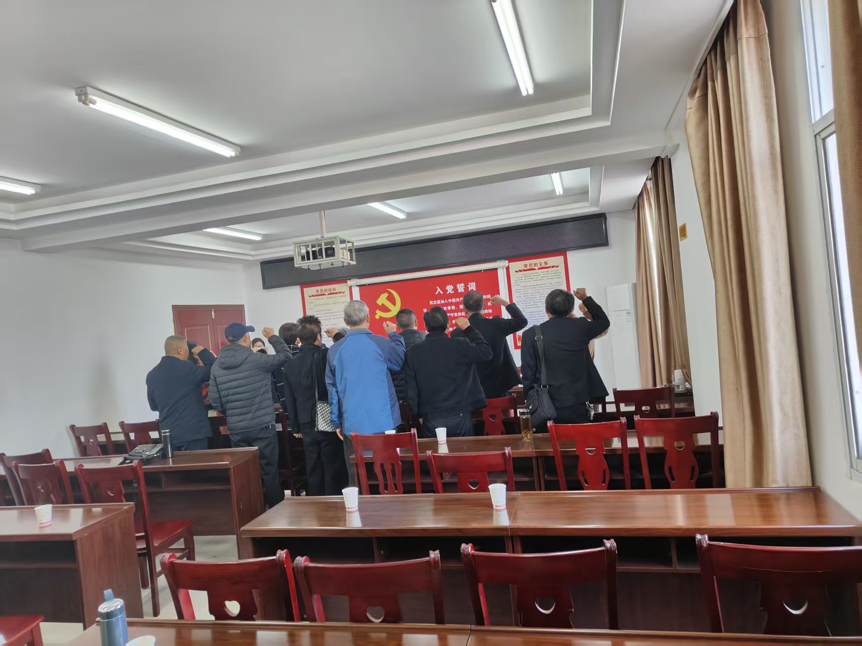 活动现场,老龄支部的老党员们面向党旗,高举右拳庄严宣誓:“我志愿加入中国共产党,拥护党的纲领,遵守党的章程.....”誓言回荡在活动室,不仅唤醒了老党员们对入党时热血时刻的记忆,也让在场的村干部感受到了老一辈党员始终坚守的信仰力量。