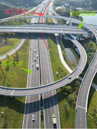 1.峡州大道(港窑路立交段)往猇亭方向部分车道施工期间临时对桥下出城方向最外侧应急车道、同向最右侧第一条车道采取全封闭管制,禁止车辆通行;同向左侧未施工两条车道可正常通行。