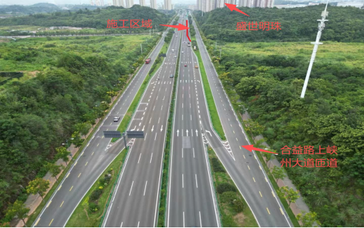 峡州大道(合益路跨线桥段)往城区方向部分车道施工点位图