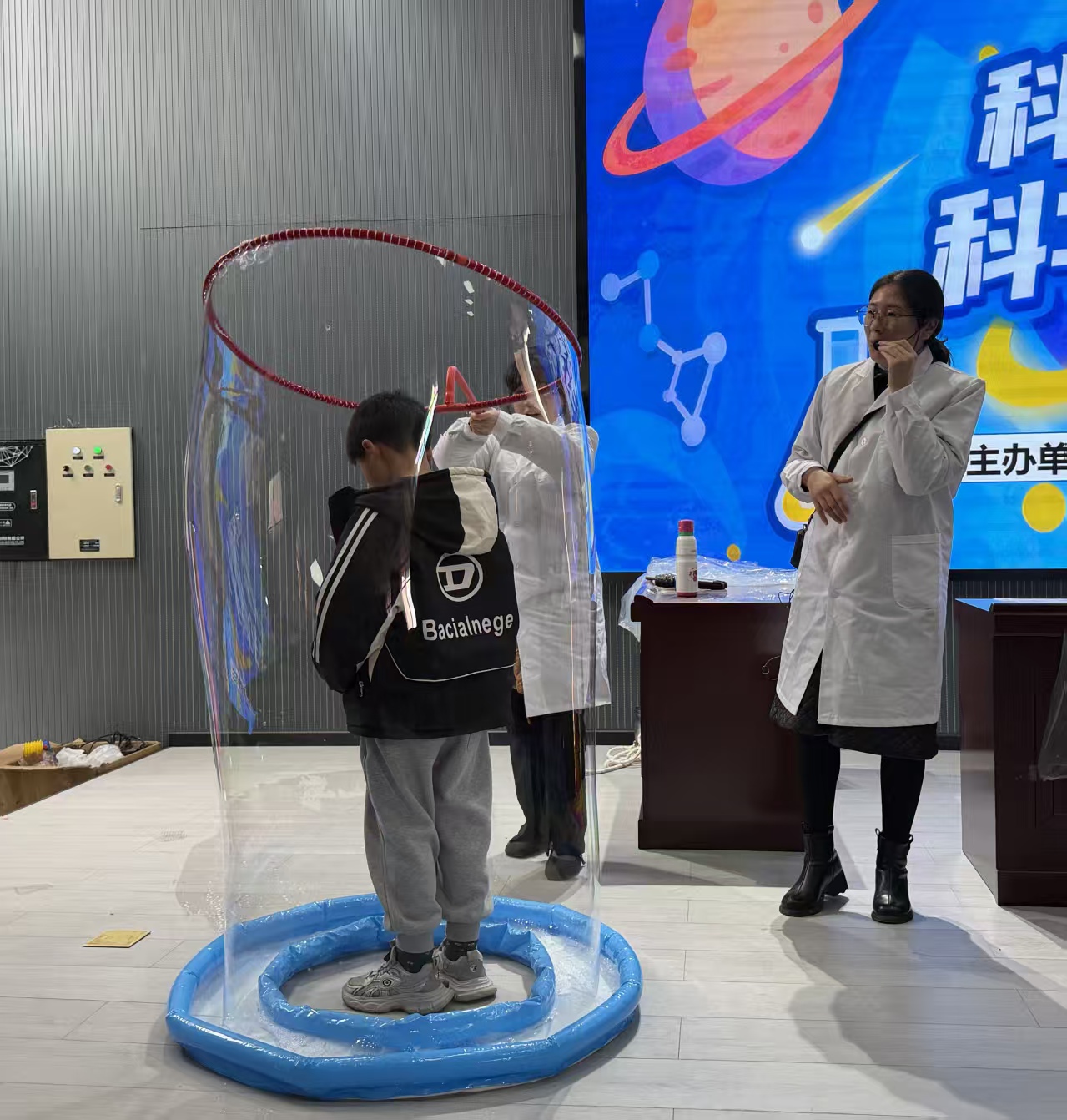 报告厅内,炫酷的科学秀更是点燃了大家的探索热情——吹袋子实验、空气动力大炮、巨型泡泡、马德堡半球实验、大象牙膏实验轮番上演,让同学们大开眼界。科普老师在实验中穿插互动提问,还邀请同学上台参与操作,从现象观察到原理推导,将抽象的科学知识转化为通俗易懂的直观体验。