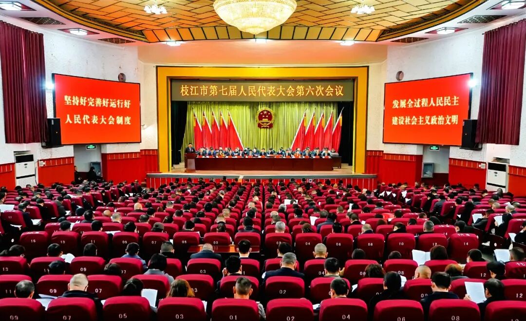 12月18日,枝江市第七届人民代表大会第六次会议在枝江大礼堂开幕。