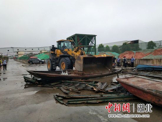 伴随着挖掘机的轰鸣声,一艘艘涉渔“三无”船舶被拆解,工人手持气焊切割机,将船体一一拆分、船上机械部件全部拆除销毁。这是近日枝江市集中拆解和销毁“三无”渔船的现场。