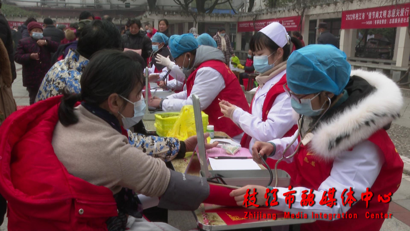枝江融媒(记者 徐露)1月18日上午,枝江市2022年“佳节尚文明 志愿关爱行”文明实践活动在杨家垱社区举行,为社区居民提供贴心服务,送上新年美好祝福。