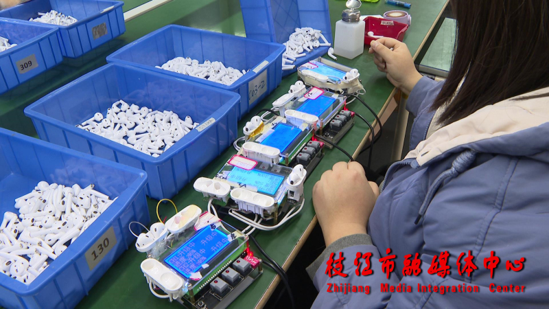 1月18日,记者来到宜昌冠力成的生产车间,看到工人正在组装蓝牙耳机,各个岗位上呈现出一片繁忙景象。