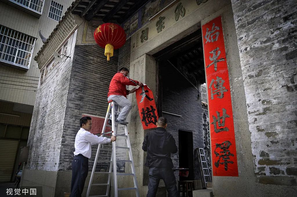 除了每个人要从头“新”到脚之外,家里也要焕然一新。家家户户的门上都贴上春联,挂上灯笼,不管走到哪里,火红的一片。