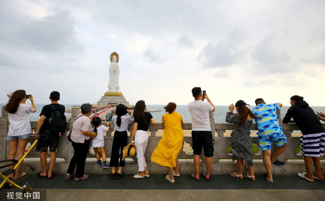 2021年2月17日,春节假期,游客在三亚南山文化旅游区游览。