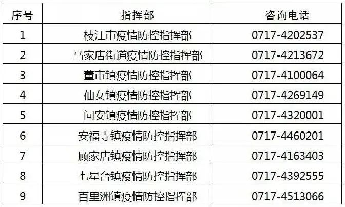 枝江市各镇(街道)指挥部咨询电话