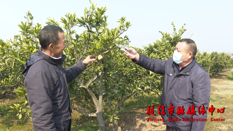 在距离合作社不远处的农户刘开全家里,一场生动的现场教学课程正在进行。刘开全家里有八百多棵柑橘树,眼下正是柑橘春管的关键时期,来自安福寺镇农业服务中心的讲师一边操作、一边耐心地讲解,现场演示柑橘修枝剪形和病虫害防治的实用技术。