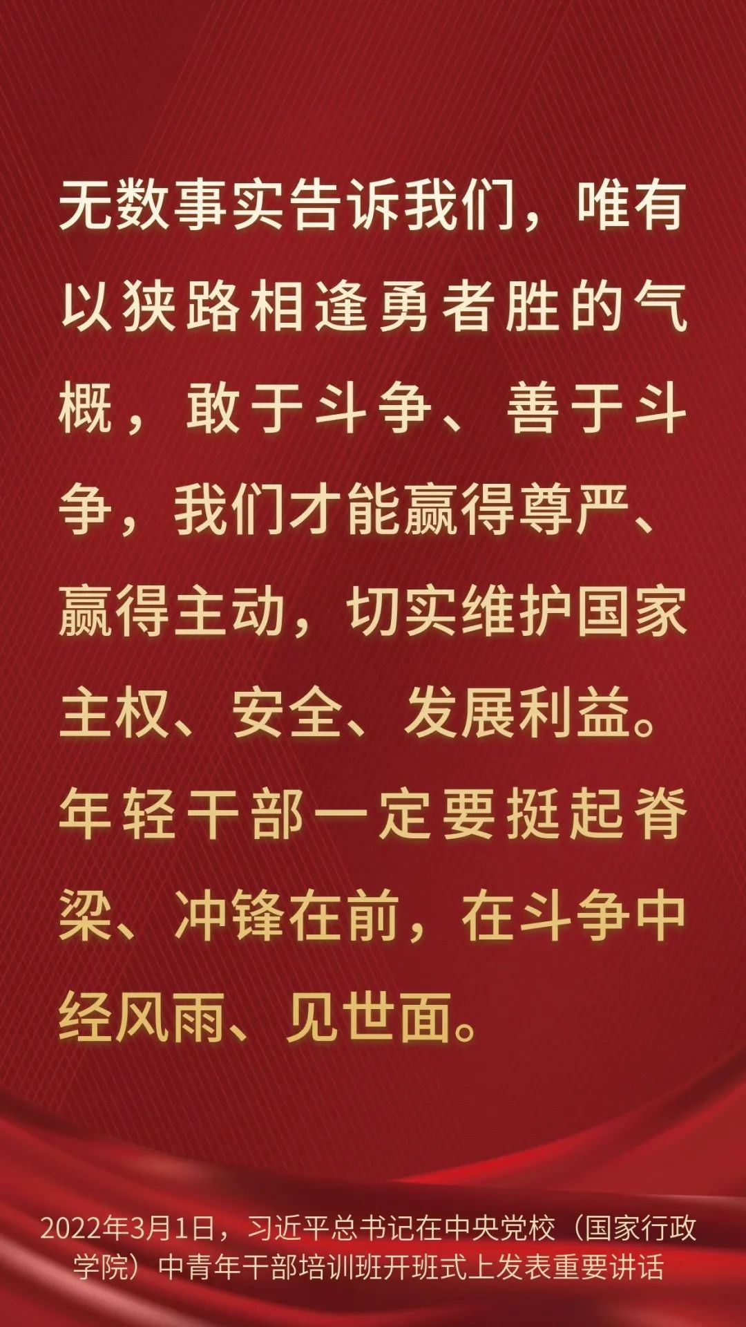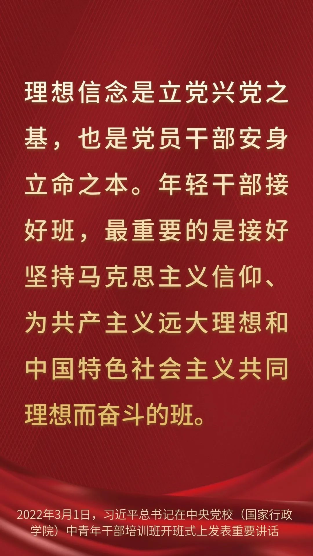 总书记“中青班”讲话金句,一起学习! 2022-03-02 08:57 0 2022年春季学期中央党校(国家行政学院)中青年干部培训班3月1日上午在中央党校开班。中共中央总书记、国家主席、中央军委主席习近平在开班式上发表重要讲话,一起来学习讲话金句。 来源:求是网
