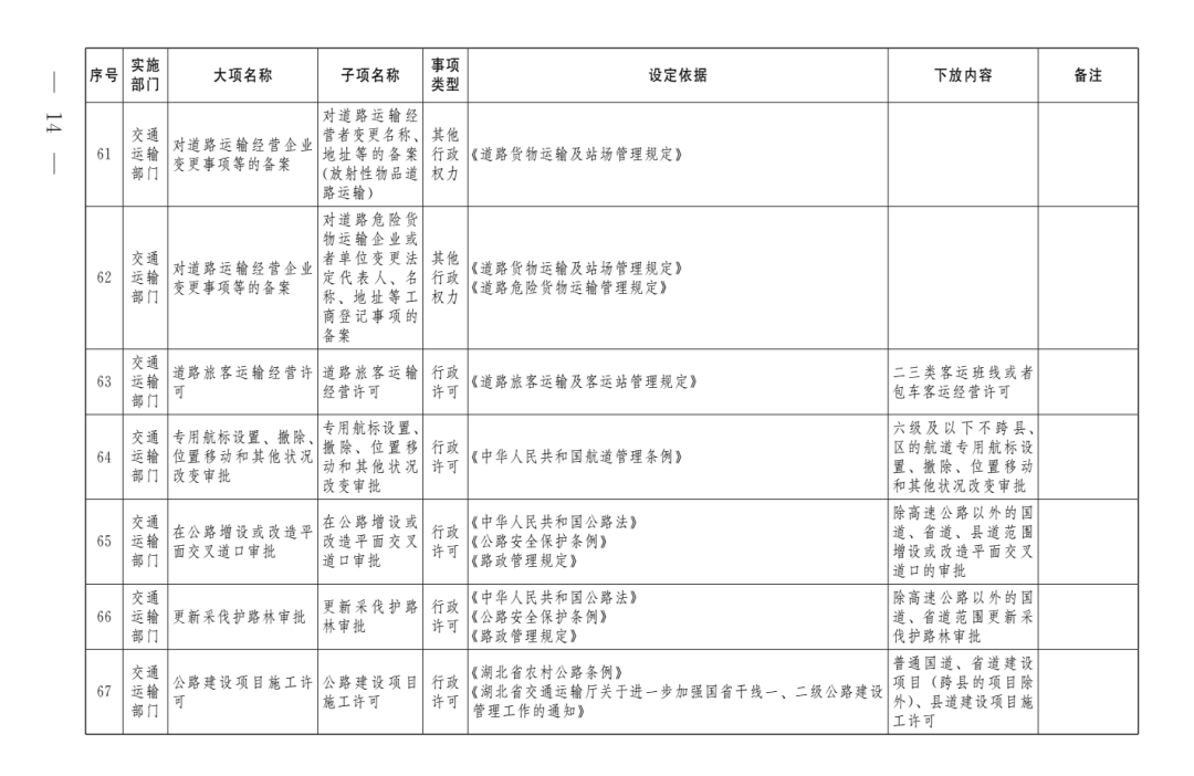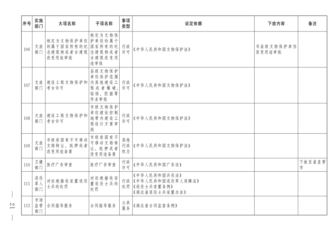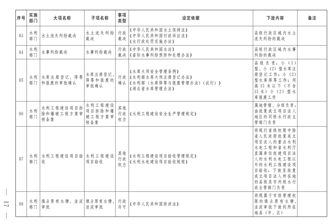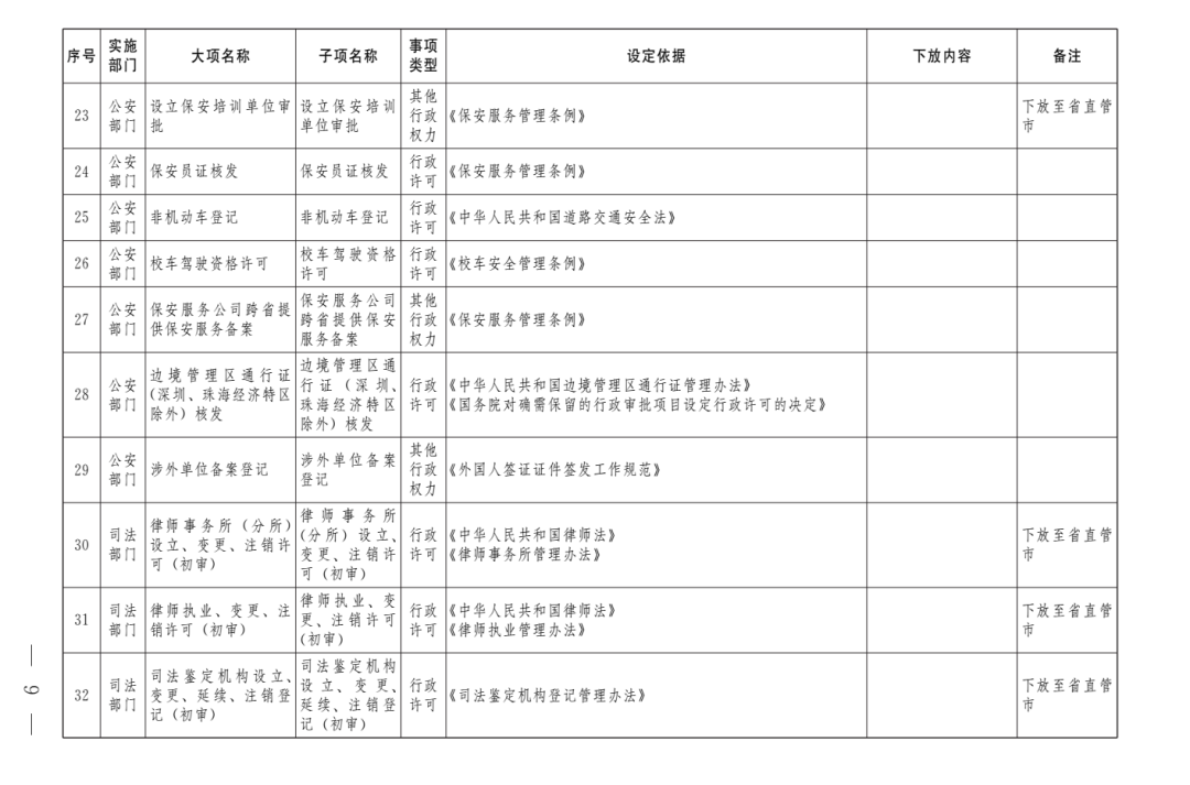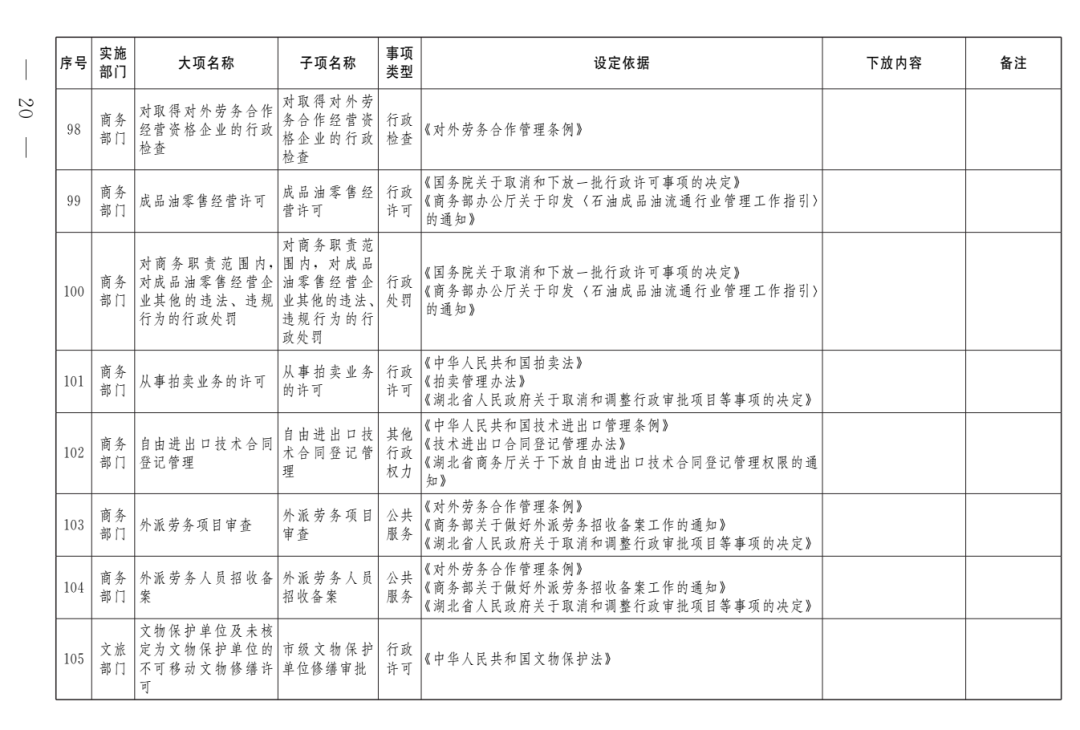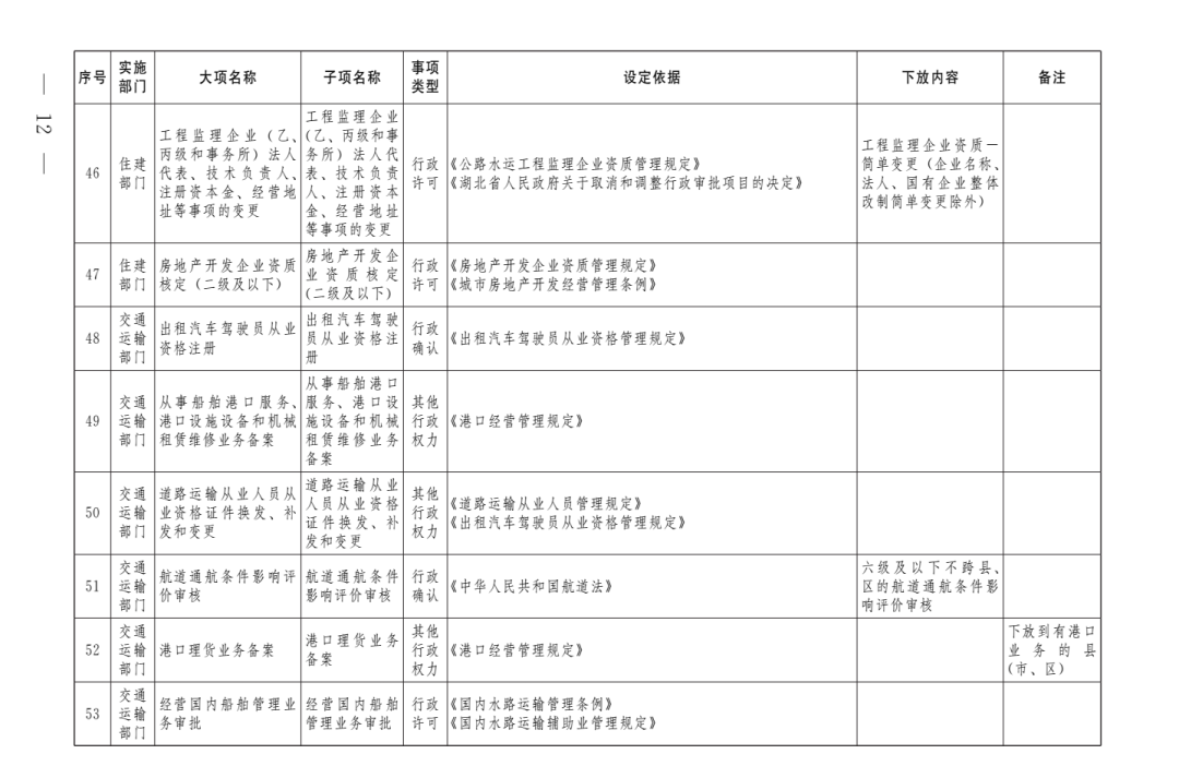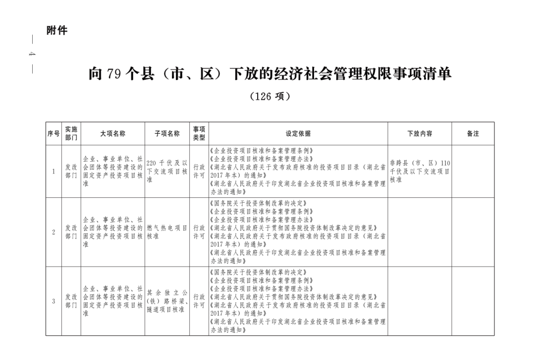 向79个县(市、区)下放的经济社会管理权限事项清单(126项)