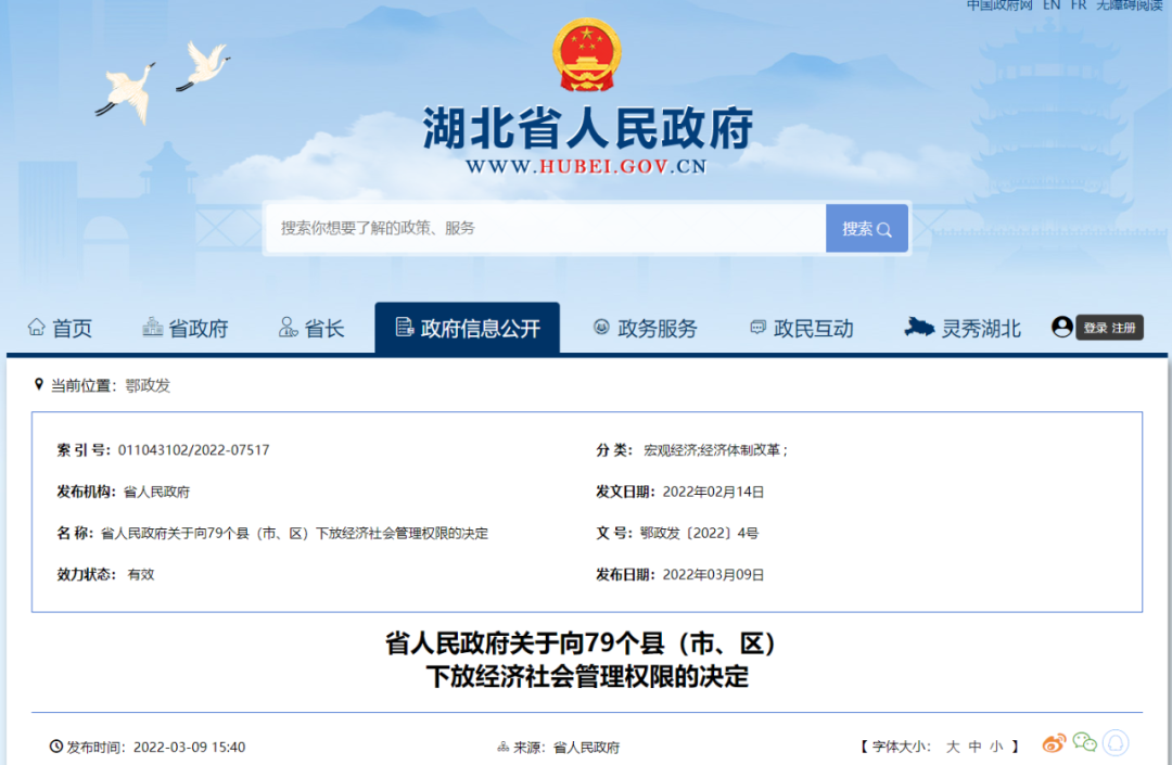 同时赋予枝江市、宜都市、大冶市、枣阳市、汉川市5个全国百强进位县市与省直管市同等的经济社会管理权限,加快全省县域经济高质量发展。