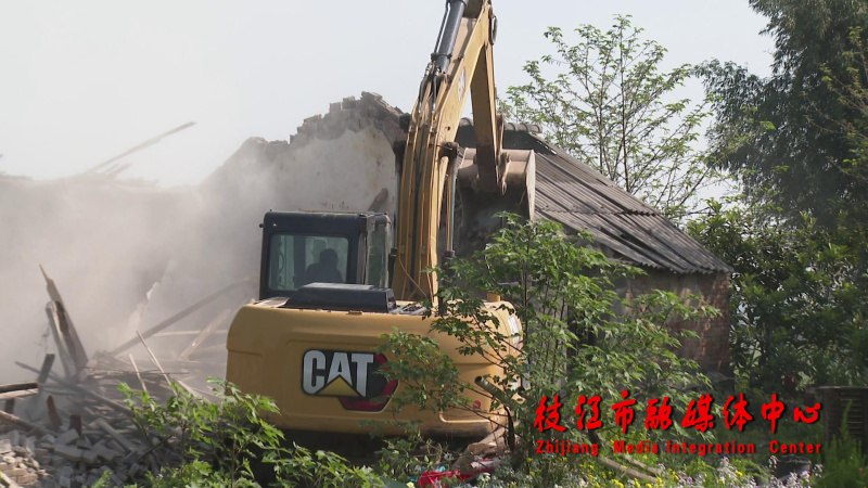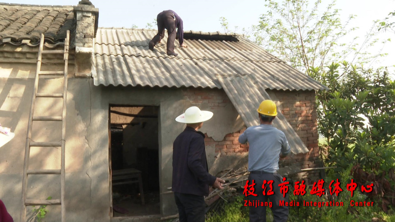 近日,杨家河村五组组长、党员王全进主动申请拆除旧居。村两委干部赶来帮他搬家具、收电线、拆板瓦,抓紧时间进行最后的清理。
