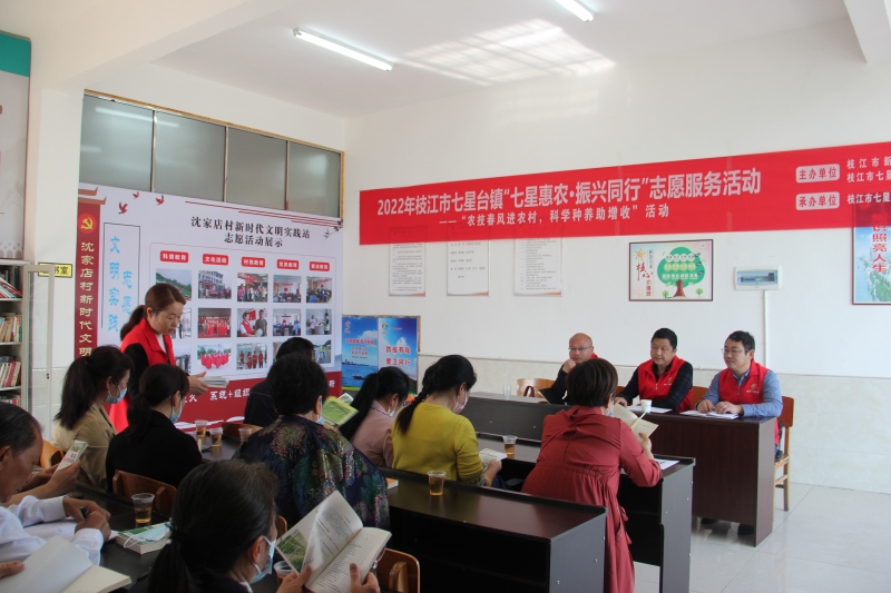 枝江市新时代文明实践中心、七星台镇新时代文明实践所联合七星台镇农业服务中心共同走进沈家店村新时代文明实践站,将农技知识带给广大群众,面对面为村民推荐了《甜瓜绿色栽培技术》《一地多种》等10余本优秀且实用的农技书籍,并现场答疑解惑。对村民提出的“如何种好西甜瓜”“如何精准施肥”等问题,农技专家一一给出了专业解答,进一步引导群众科学种植、养殖,助力乡村振兴。