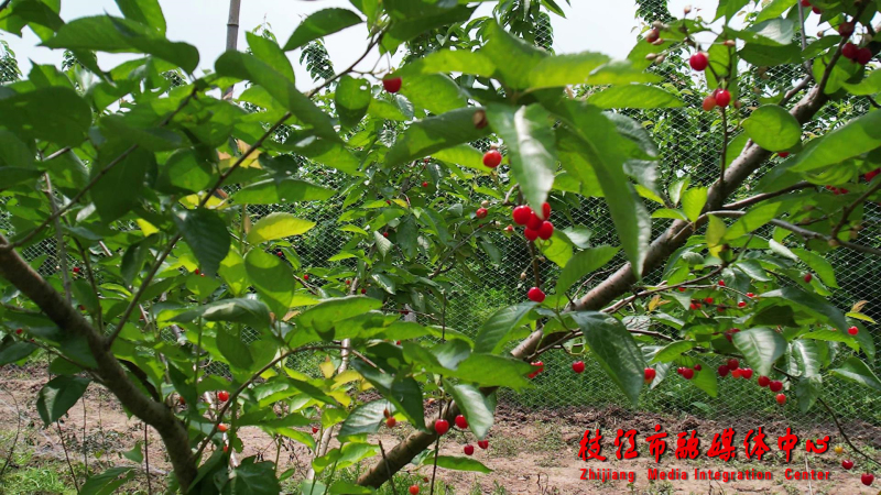 “樱桃好吃树难栽”,樱桃树是一种非常娇气的果树品种,为了确保收成好,除了果树的科学化种植和精细化管理,樱桃园区内还安装了声控防鸟系统和全覆盖的网纱,确保樱桃果实不受侵害。这些被精心呵护长大的小果子,也为合作社带来了喜人的收益。