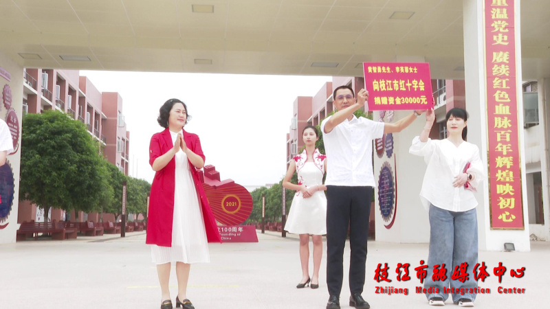 捐赠仪式上,枝江市职教中心校友黄智勇、李芙蓉夫妇向枝江市红十字会捐赠3万元,用于定向资助枝江市职教中心困难学生。