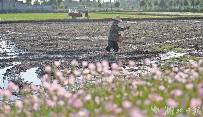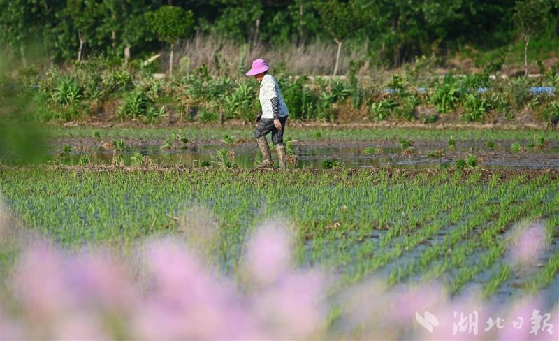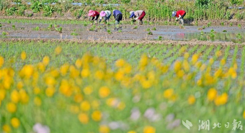 5月16日,地处江汉平原的枝江市问安镇关庙山村正是插秧生产的农忙时节,村道边鲜花盛开,一块块亮汪汪的水田充满着诗情画意,色彩艳丽的鲜花让农忙时节的乡村变成了一幅美丽的风情图画。