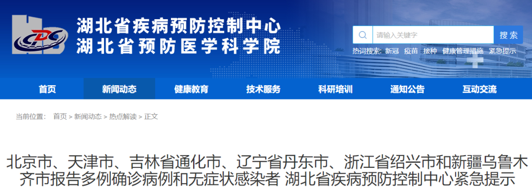 北京市、天津市、吉林省通化市、辽宁省丹东市、浙江省绍兴市和新疆乌鲁木齐市报告多例确诊病例和无症状感染者