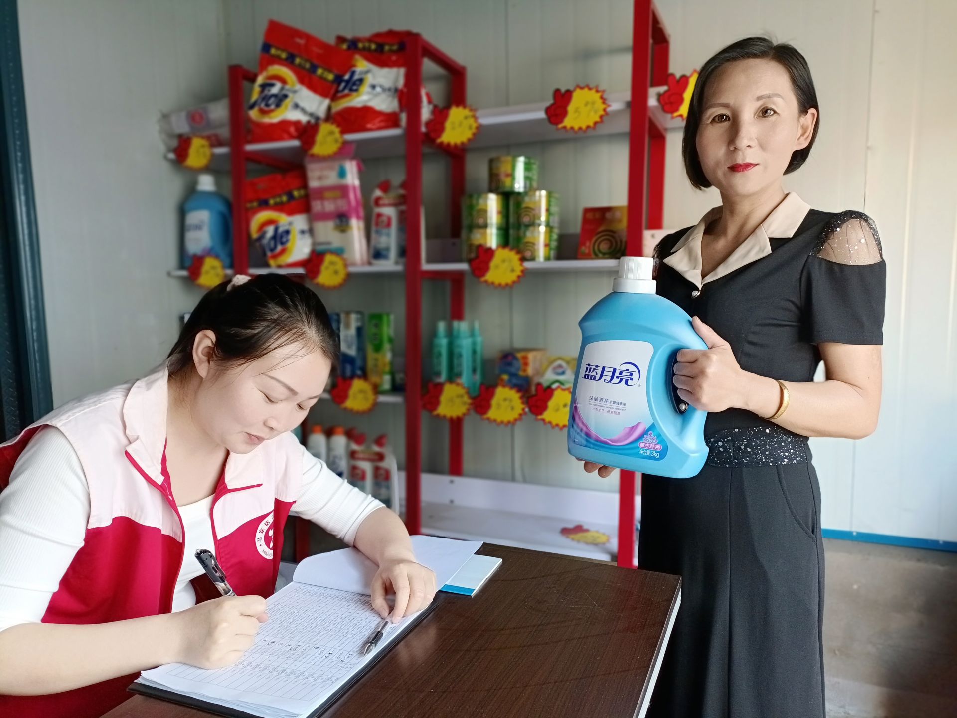 “咱们村只要参加村里的志愿服务满1个小时就能加分,反正收拾完菜园子在家闲着也是闲着,能帮助村里给大伙搞搞服务还能有奖励,我当然愿意参与啦!”村里的先进户王芳高兴地举起兑换的奖品说道,“这是我兑换的第5瓶洗衣液了!”