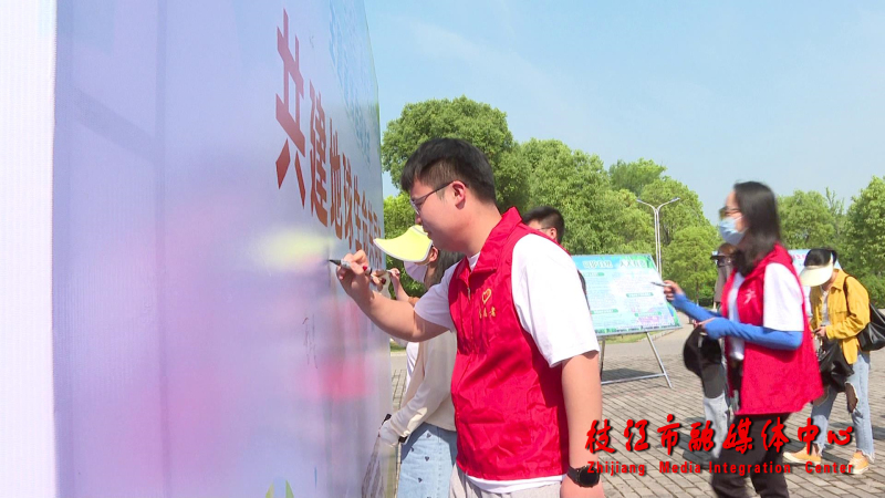 枝江融媒(记者 王小露)近日,一场以“共建地球生命共同体”为主题的宣传活动在仙女生态公园拉开序幕。活动现场,来自市自然资源和规划局的青年代表宣读《生物多样性保护倡议书》,参与活动的人员在海报展板上签名留念后,便身着志愿服开展生态卫生洁城志愿服务活动。
