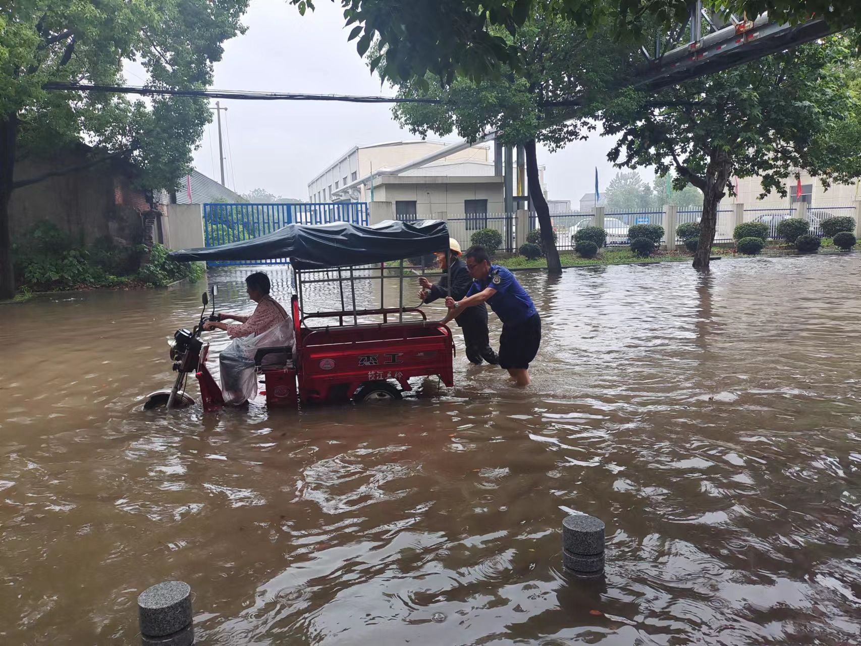 市城管执法局第一时间启动防汛应急预案,压实防汛责任,各易涝点位责任人积极响应,迅速赶赴现场。针对城区积水情况严重的点位(双寿桥路省化东门、七星大道香青化肥厂、南岗路与沿江大道交汇处、团结路与南岗路交汇处、南岗路中央山水西门等责任点位),迅速增派人手。