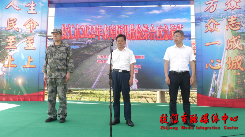 枝江融媒(记者 李贤)6月16日,枝江市开展2022年水库防汛抢险综合应急演练,切实增强广大干部群众防汛抗灾意识,深入推进我市应急救援力量建设和提升处置突发性自然灾害能力。市委副书记、市长、市防汛抗旱指挥部指挥长黄芳帅指挥演练。
