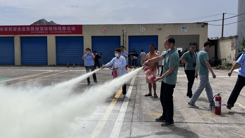 演练结束,现场还组织参训人员观看《生命重于泰山》安全警示宣传片,邀请市人民医院急救科主任和市消防救援大队高级主任教员讲解高温中暑、心肺复苏、烧伤处理等急救知识和消防救援、应急处置知识。在灭火器实操环节,参训人员踊跃参与,亲身体验灭火器扑灭火源的过程。通过现场授课、观看警示片、现场实操等方式切实将救火防灾、急救知识传输到每个人心中。
