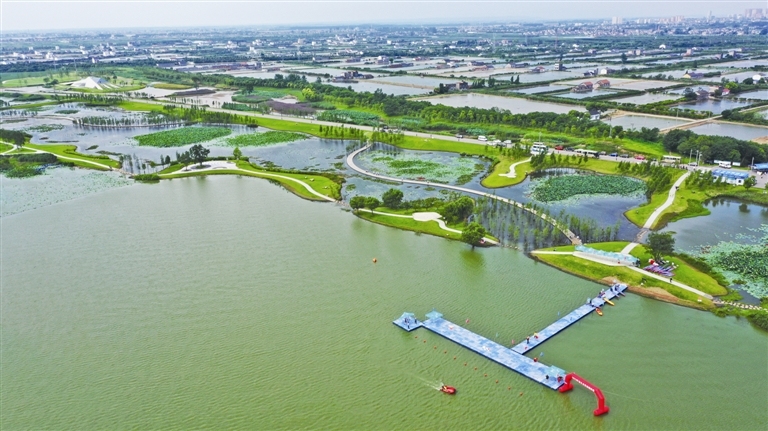 枝江金湖成为长江经济带生态保护的标杆 2022-07-04 19:03 0 游客近日在枝江金湖国家湿地公园骑车、步行、水上观光游览。该湿地公园是长江中上游地区最大的天然湖泊湿地,现已建成为“长江水源净化器”“宜昌天然氧吧”“枝江城市绿肺”,成为长江经济带生态保护的标杆。 来源:三峡日报