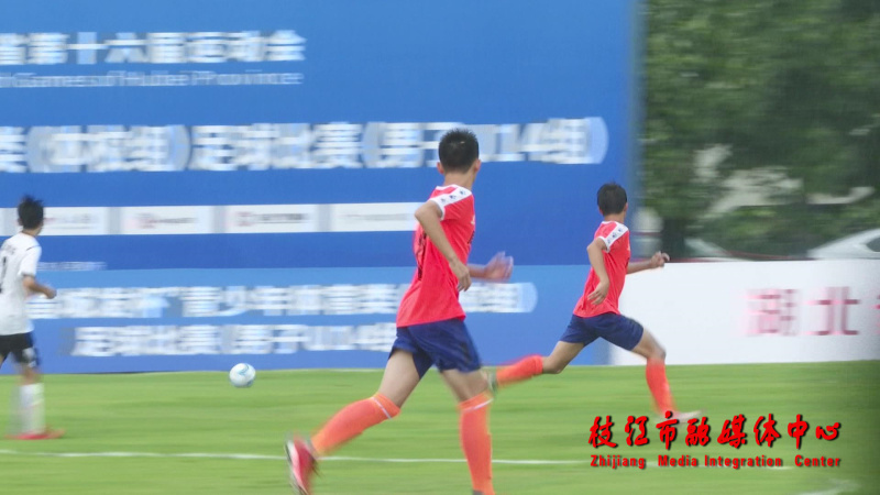 枝江融媒 (记者 金秋)绿茵传递梦想,拼搏凝聚力量。7月4日,湖北省第十六届运动会青少年体育类(体校组)足球比赛(男子U14 组)在枝江市文体中心火热开赛。