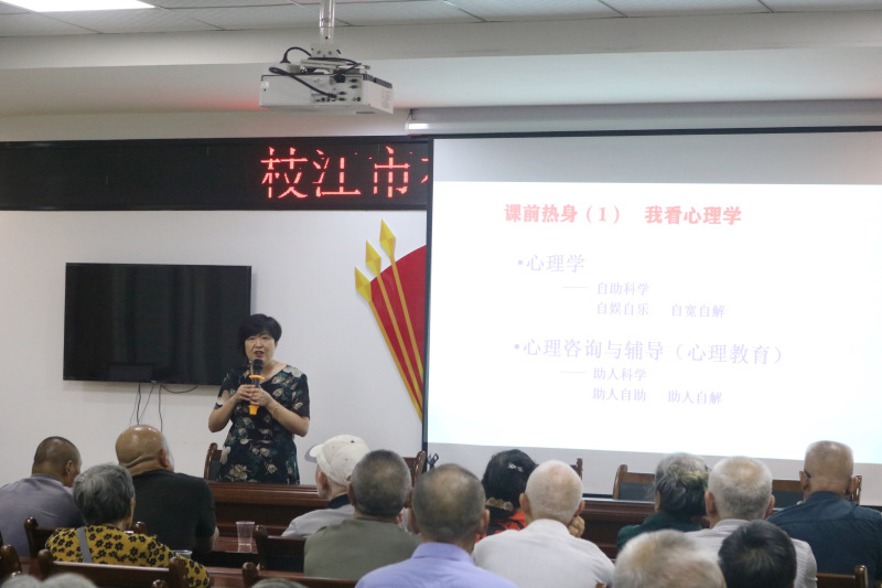 活动现场,黄教授利用心理互动游戏巧妙拉近与老人之间的距离,并结合实际案例,从老年人现状、心理特点、心理健康测评、心理健康维护四大方面,生动形象地为大家讲述心理健康知识,引导老人们调节自身心态,正确面对生活中的负面情绪。