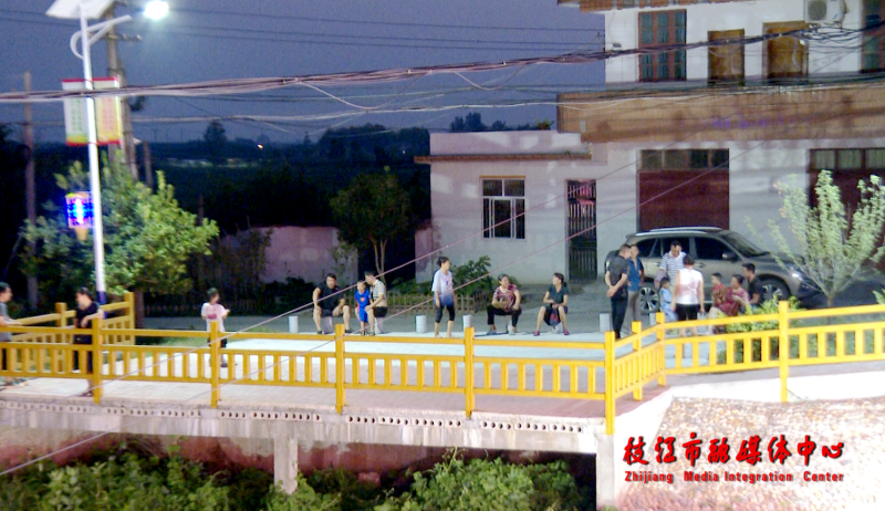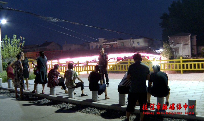 夜幕刚刚降临,联丰村建强桥边的亲水平台上逐惭热闹起来,老少村民们三三两两地聚集到这里,边纳凉边话生产、拉家常,孩子们则尽情地嬉闹玩耍,欢声笑语不断。稍后,忙完农活家务的大姐们在场地上跳起了广场舞,现场气氛被渲染得更加热闹了。此情此景,令人难以置信数月前这里还是一处破乱不堪之地。