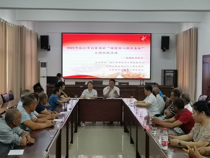 枝江融媒(通讯员 孙梦媛)乡风淳,乡村兴。为深入推进移风易俗工作,建设美丽乡村,8月30日,马家店街道白家岗村新时代文明实践站围绕文明祭祀等内容组织党员群众开展了“学习村规民约,助力乡风文明”专题学习活动。