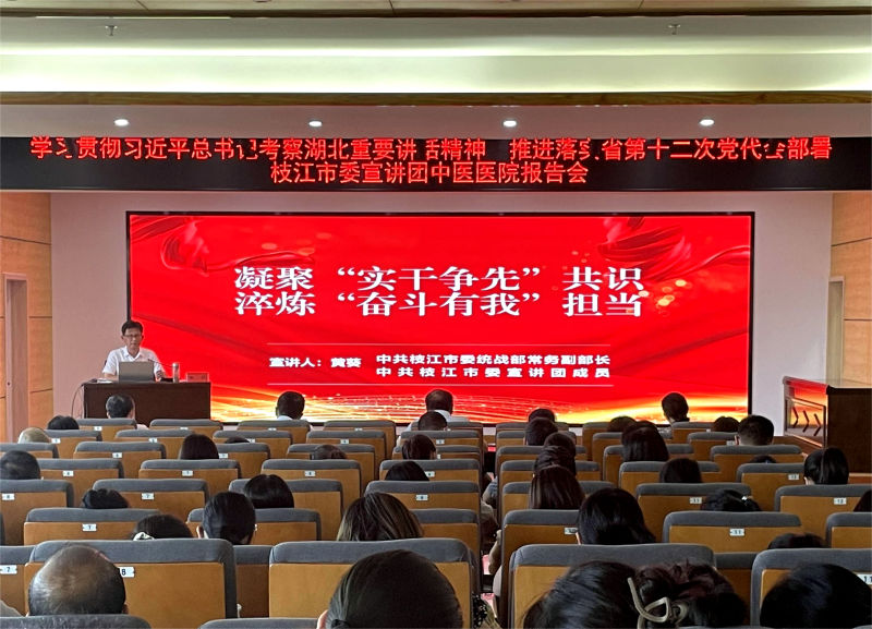 宣讲报告会主题鲜明、内容丰富,具有很强的思想性、针对性和指导性。市中医医院党员干部纷纷表示,将全面准确学习好、贯彻好、落实好习近平总书记考察湖北重要讲话精神和省第十二次党代会精神,立足岗位,踔厉奋进,为全市人民的健康保驾护航,为“健康枝江”建设贡献力量。