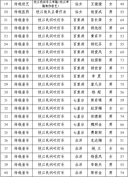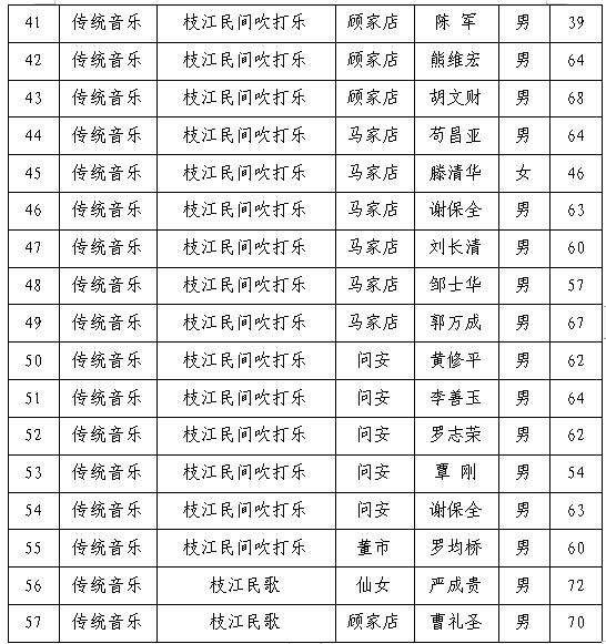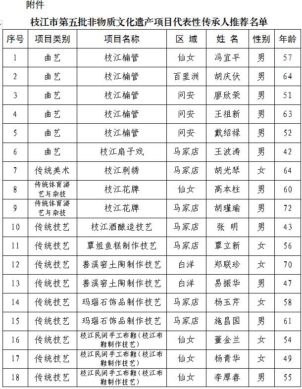 附件:枝江市第五批非物质文化遗产项目代表性传承人推荐名单