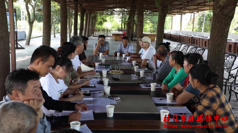 正午十分,在曹店村委会的凉亭里,一场村民议事会正在召开。去年,村里的枫林月季园升级为3A级景区,成了远近闻名的打卡点,但游客越来越多,配套设施却没跟上。眼下,村里计划建一个游客接待中心,但怎么建?这得村民一起商讨。