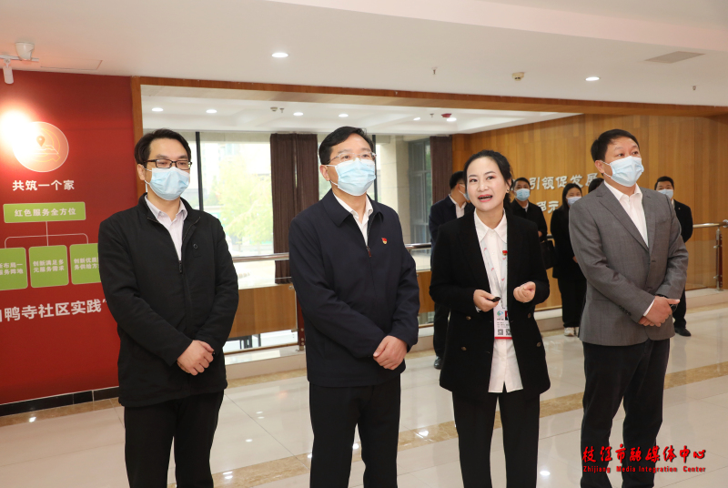 走进宽敞明亮的白鸭寺社区党群服务中心,办事大厅映入眼帘。积分超市的货架上,商品种类齐全;随处可见的温馨标语烘托出睦邻友好、彼此关照、互相守望的浓厚氛围;心灵手巧的居民用毛线编织作品表达着对党和国家的热爱……余峰边走边看,与社区负责人深入交流,听取社区治理与基层党建相关工作情况的介绍,详细了解筑堡工程阵地建设、场景打造、资源配置等情况。