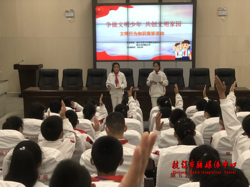 枝江融媒(通讯员 许艺洋 魏鑫洁)青春有为立壮志,少年振翅击长空。10月26日,枝江市新时代文明实践中心联合市教育局、市丹阳小学开展“培育践行主流价值 共同缔造文明新风”文明实践活动。通过文明知识竞答、“好家风”故事宣讲、新时代好少年事迹宣讲等系列活动,以寓教于乐的方式,让学生沉浸式感悟榜样力量,互动式学习文明知识,进一步培育践行社会主义核心价值观。