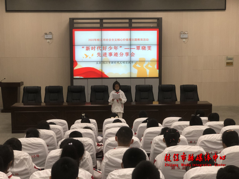 学生薛雯琪还讲述了身边榜样枝江市“新时代好少年”覃晓雯自强不息、笃爱文学、孝敬长辈、乐于助人的先进事迹。让在场学生深受感染,纷纷表示要以大爱为桨、责任为舟、勤学知识、涵养品德,争做新时代好少年。