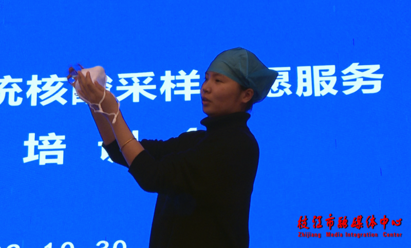 培训课上,市人民医院感染管理科、核酸采集点的医护工作者以PPT讲解、实操练习相结合的方式,讲解了新冠肺炎病毒核酸检测、标本采集、个人防护操作、医疗废物处理的方法。重点围绕核酸检测信息录入、穿脱隔离衣、七步洗手法等方面进行了详细的讲解,让每名志愿者直观地掌握操作细节。授课结束后,为保证培训质量,市人民医院医护人员对每名参训志愿者进行现场考核,手把手指导每名志愿者进行核酸采样规范操作,确保所有志愿者均通过培训考核。