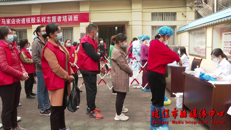 11月7日,一场核酸采样志愿者培训在马家店街道办事处广场开展,培训对象是青年大学生、小区居民、企业商圈和街道机关的154名志愿者。