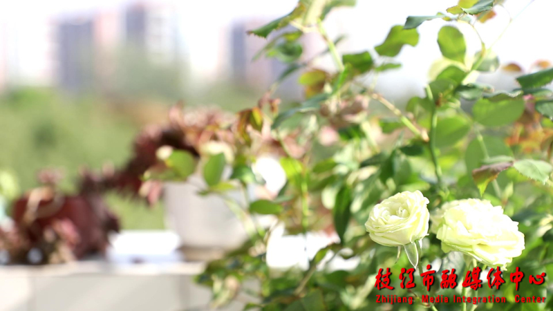 在“最美阳台”获得者戴明琼家中,她正拿着水壶、剪刀为自家阳台的花朵和绿植进行浇灌修剪,精心装扮着庭院里每一个细节,各种花卉正竞相绽放,美不胜收,谈起养花的经历,她一下打开了话匣子。“有次偶然到同学家去玩,他的花园阳台非常漂亮,就想自己能不能拥有这样一个好看的阳台呢?然后就开始行动起来,购买了花架,买了一些月季、风车茉莉、还有蓝雪花开始装扮,在养护的过程当中,月季非常容易招红蜘蛛,就在网上学习,买了这个螺螨酯还有代森锰锌之类的,就把这个病虫害给治住了,一年之后,自己的这个阳台就非常有规模了。”谈起自家的阳台,戴明琼非常有成就感。