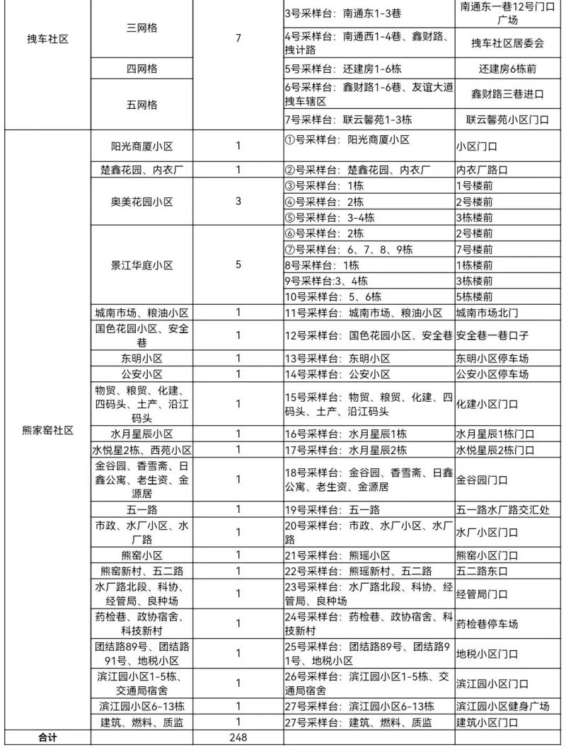 二、采样范围:马家店街道西至东干渠大道,北至仙女四路—民主大道—新318国道,东至金山大道,南至沿江大道。主城区共设置采样台248个,另在电子信息产业园设置3个采样点。
