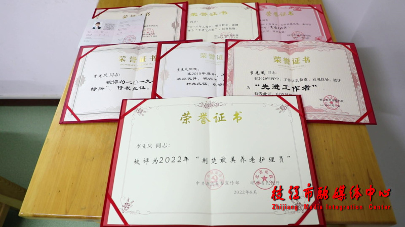 家人的理解,让李先凤在工作上更加笃定。17年的坚持,不仅让李先凤找到了人生定位,更加深了她对老人护理工作的感情,她用平凡讲述着不平凡,用自身行动诠释着责任、真情和“敬老、孝老、爱老”的情怀。李先凤先后被省委宣传部、省民政厅评选为2022年“荆楚最美养老护理员”,被宜昌市委宣传部评为“宜昌楷模”,多次被枝江市授予“工作标兵”“先进工作者”等称号。她把这些荣誉当成一个新的起点,更加坚定了继续做好护理员这份工作的决心和信心。